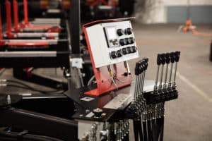 Hydraulic Vertical Log Stops the same dependable design we’ve used for years, beefed up with solid two-by-two steel uprights.
