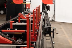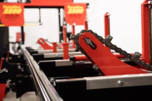 Dual Bi-Directional Chain Log Turners for ultimate control on big logs. Massive #100 chain and solid machined turner blocks lets you easily turn logs in both directions for perfect positioning. We invented it…now we’ve perfected it.