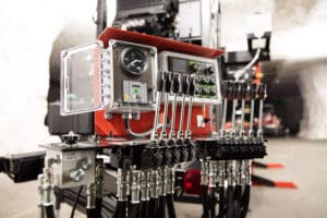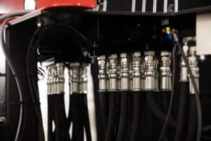 Heavy Duty Industrial Energy Chain binds hydraulics in a coat of protective armor…safe from abrasion and damage. Lines are tucked along side of machine, can’t get caught on over-hanging limbs, branches or gateways.