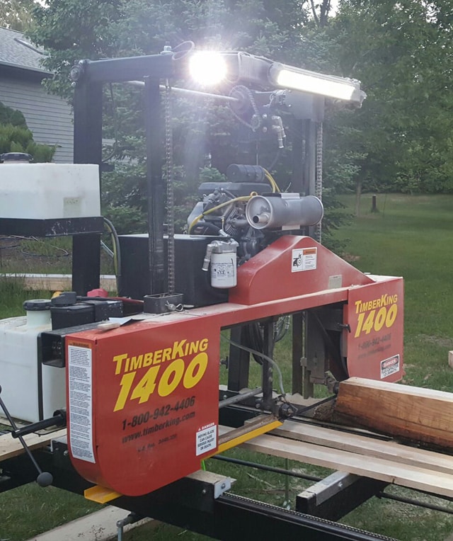 I’d trade in my 1400 today but you couldn’t make a new TimberKing 2000 fast enough for me. I can’t afford the downtime. I’m running two shifts and it’s not my busy season yet. Note the LED lights I added to the machine for night shift sawing.