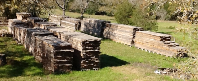 I sawed thousands and thousands of board feet of southern yellow pine, eastern red cedar, oak, elm, and more. The first load I put in my solar kiln was forty-eight 12” x 12” x 20’ timbers. That was in 2015. After drying, I laid them out to match them up and decide where they’d go in the house. Then a tornado came along. It took down the barn and heavily damaged the kiln! I lost half the kiln’s wood due to weather.