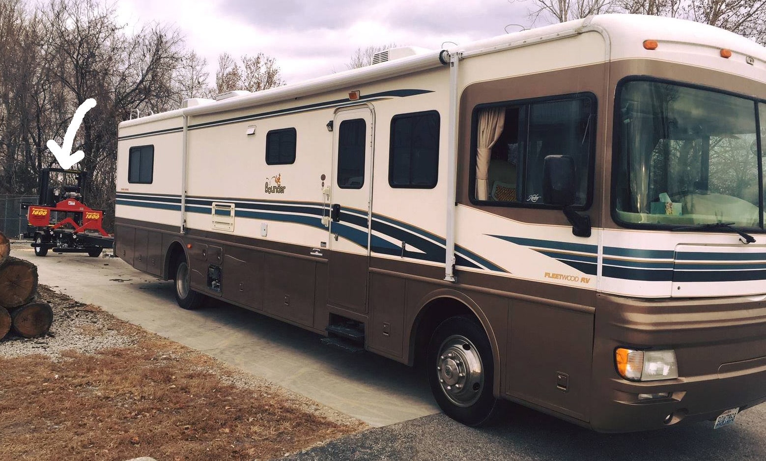 While I was working with TimberKing about purchasing this machine, I asked about delivery. That’s when the idea came up to tow it home behind my 40’ RV. I knew my RV could tow a mill easily and would cost less than having it delivered.
