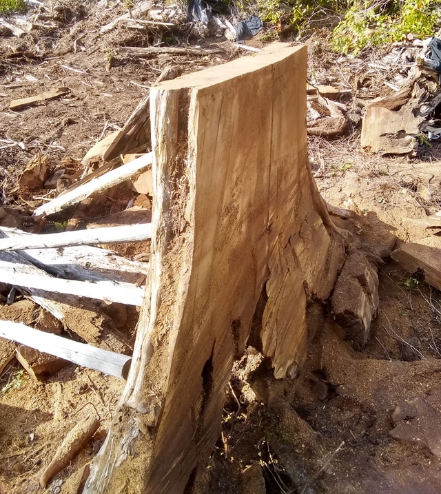 Anyway, where I lived was an old-growth cedar forest that was cut in the 1960’s. They cut the trees and took only the best, straight logs. Some were lifted out by helicopter. They high-graded the wood for shingle blocks and left lots of logs and stumps. They’re still there and some stumps are 20’ across. Cutting into them yields wood of extraordinary character and quality.